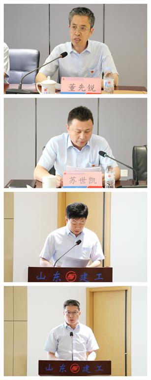 會上,集團副總經理、總工程師董先銳作題為《奮楫揚帆風正勁 創新發展正當時 為高質量完成集團科技質量安全目標而努力奮斗》的工作報告。八分公司項目總工吳曉雨、四分公司總工程師徐世友、一直屬公司安全總監李建國分別作科技、質量、安全管理先進典型發言。集團技術中心副主任紀豐茂宣讀《二〇二三年科技創新規劃》《山東建工集團科技成果獎罰辦法》《關于對二〇二二年度科技成果進行獎勵的通知》。集團總經理助理兼工程部總經理李冬冰宣讀《二〇二三年度質量監督管理升級規劃》《山東建工集團質量、安全生產管理創優創獎獎罰規定》《關于對二〇二二年度在爭創華東地區優質工程獎、山東省優質結構等工程中相關單位和人員進行獎罰的決定》《二〇二二年度安全生產獎罰通報》。集團副總經理、安全總監蘇世凱宣讀《二〇二三年度安全管理目標規劃》。集團副董事長師厚紀宣讀《關于表彰集團二〇二二年度杰出項目總工及科技質量安全管理工作先進個人的通知》。之后會議舉行頒獎儀式。